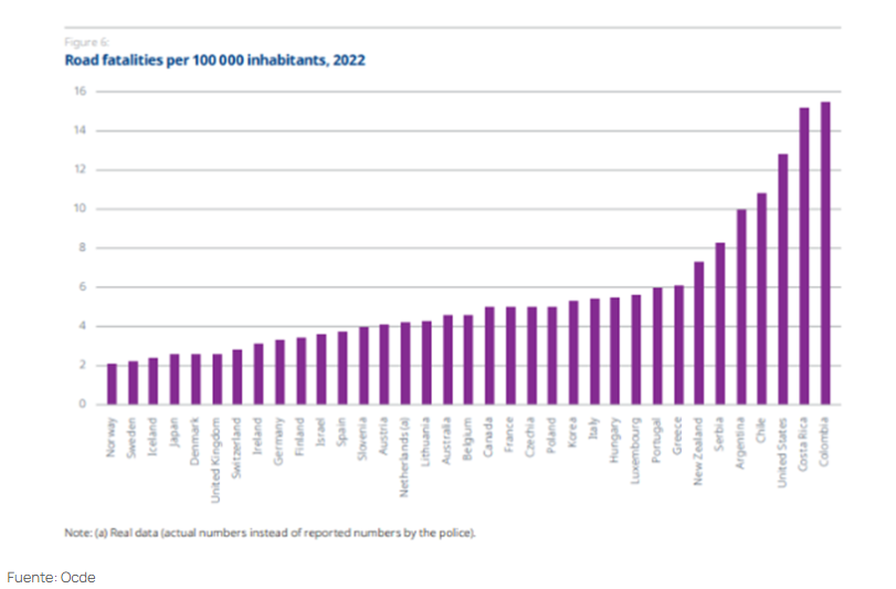 Una de las cosas positivas de hacer parte del club de la Organización para la Cooperación y el Desarrollo Económico (Ocde) es poder compararnos con países de mejor desempeño en muchas áreas y aprender de sus buenas prácticas.  Es muy frecuente que aparezcamos en los últimos puestos, pero más que lamentarnos eso nos debe llevar a entender y aplicar las cosas que funcionan. Una de las muchas áreas de comparación es la seguridad vial.