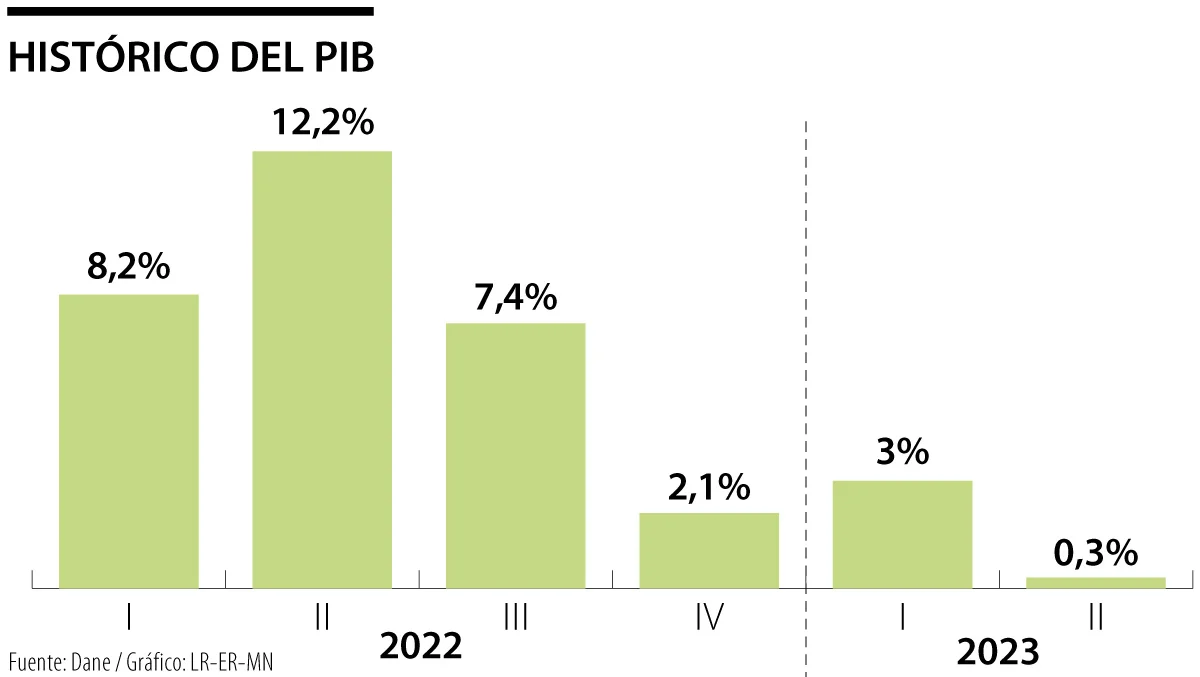 El Producto Interno Bruto, PIB, del segundo trimestre creció 0,3%. Las actividades que más contribuyeron a la desaceleración fueron la rama de comercio, con una caída de 3,2% y un aporte de -0,6 puntos porcentuales (pps); seguida de la industria manufacturera (-0,5 pps); y la construcción (-0,2 pps), según el Dane.