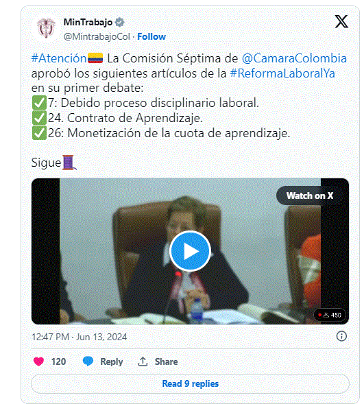 Con 50 artículos aprobados y 22 hundidos la reforma laboral se acerca a la plenaria