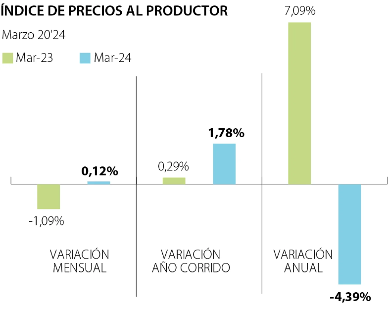 De acuerdo con los cálculos del Dane, el IPP registró una variación positiva de 1,78% entre los tres primeros meses de 2024
