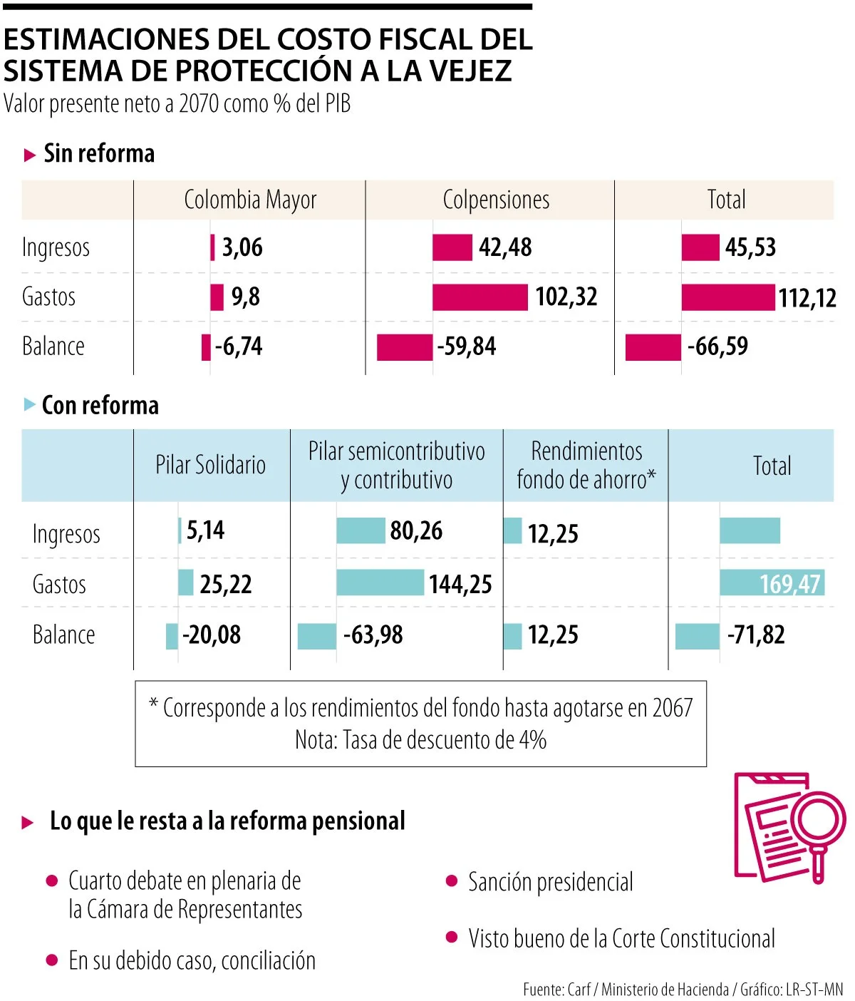 Según las cuentas de Fedesarrollo el valor neto de la reforma sería de $184 billones, y tendrá un incremento del pasivo pensional de $64,6 billones.