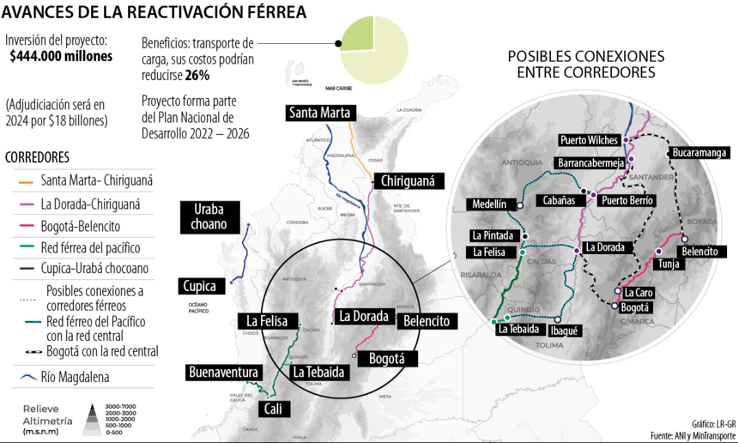 La ANI, en estos momentos, trabaja en cinco vías férreas a las que quiere interconectar. Este proyecto está contemplado en el Plan Nacional de Desarrollo 2022-2026.