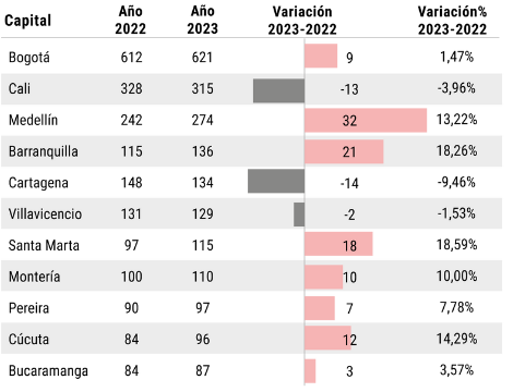 Para el total del año pasado, las cifras del Observatorio Nacional de Seguridad Vial dan cuenta que 8.405 colombianos murieron en las vías, mientras que otros 29.482 quedaron lesionados. Estos números representan incrementos del 1,71 y 1,34, respectivamente, en comparación con los registros de 2022.