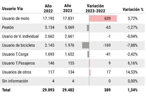 A la par con este crecimiento general también lo ha hecho el de los motociclistas muertos, que en 2017 fueron 3.234 y actualmente superan cómodamente las 5.000 víctimas fatales.
