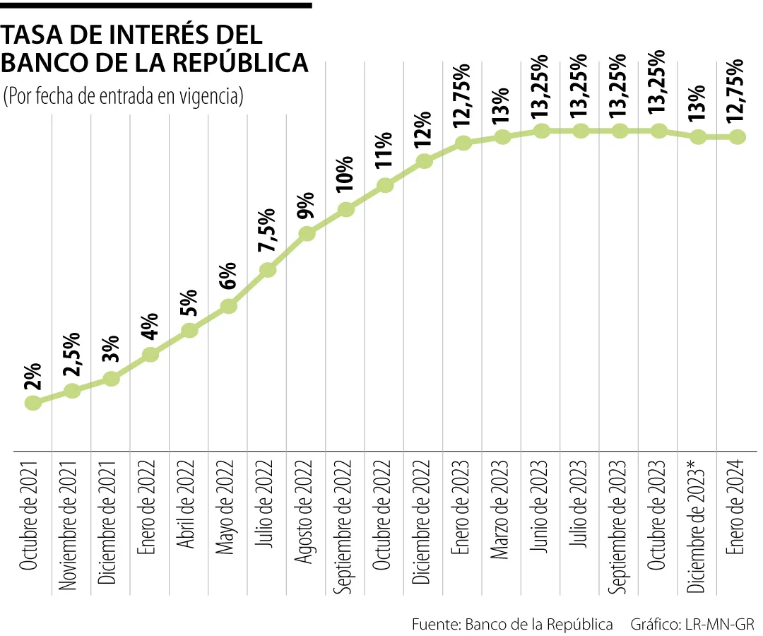 A pesar de las presiones del Gobierno Nacional y de algunos gremios empresariales, la Junta Directiva del Banco de la República decidió recortar las tasas de interés en solo 25 puntos básicos, de 13% a 12,75%. Es el nivel más bajo de los tipos desde enero de 2023, cuanto también se fijaron 12,75%.